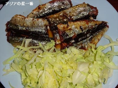 お久美さんから頂いた、さんま蒲焼を食べました。ビタミンCが逃げないよう、刻んだキャベツを、炒めもせず、煮もせず、単純にレンジで温めたものを添えたのであります。この、さんま蒲焼は、勿論、日本製であります。きっと高かったと思いますが、感謝しながら、頂きました。T子さんから頂いた黒米も、ありますので、炊きました。毎日、栄養たっぷりであります。元気もりもりだなー。