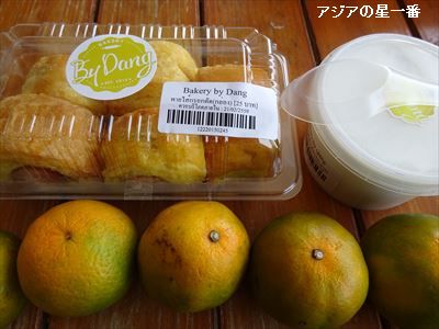 ちょこっとした事で、頼まれごとをしてくる方がいます。簡単なことなので、二つ返事でOKし、お手伝いします。そうすると、色々と頂くのです。返って申し訳ない位なのです。この時は、みかんに、何とかパンに、何とか飲物でした。ご帰国前にも色々と貰いました。これは何でしょう? 聞いたことも見たこともありません。これは、サプリメントですねー。どうも繊維質を含む飲物のようです。皆さん、色々と健康に気を使い、飲んでいるようですねー。O先生は、DHCの健康食品:パーフェクト野菜を飲んでいますし・・・。「梅醤番茶」、と言うのも貰いました。「朝の目覚めの一杯は、体の調子をととのえ、日中の気分転換や1日のリフレッシュに最適。」、と記載されております。梅干しと3年番茶から作られているようです。スプーンで、お好きなだけコップに入れ、熱い湯を注ぐだけ。簡単です。これで、1日体調が良いなら、毎朝飲みますが・・・。もう10年来、生姜紅茶を飲んで、そのお蔭で風邪を引いていません。生姜紅茶は止められないし、どっちを飲むか、悩みますよ。黒米も頂きました。白米同様、炊飯器で普通に炊いて見ました。意外と美味しいですぞ。初めて食べました。黒米は、紫黒米とも、紫米とも言われるようで、イネの栽培品種のうち、玄米の種皮または果皮の少なくとも一方に、アントシアニン系の紫黒色素を含む品種のことであるそうです。白米に比べてたんぱく質、ビタミンB1、ビタミンB2、ビタミンE、ナイアシン、リジン、トリプトファンなどが豊富に含まれ、鉄分や亜鉛、リン、カルシウム、マグネシウムなどのミネラル類も豊富に含まれていると言うのですねー。と言う事で、栄養をたっぷり採りました。それから、調味料も頂きました。両端の、醤油と酢は分かりますが、真ん中の3本は、何に使うのか全く分かりません。アジアの星一番は、塩胡椒と醤油だけで、炒め物していますから、このような、調味料は見た事もありません。分かりませんが、調味料ですから、使えるだろうと、野菜炒めに、3本とも、少しずつ入れて見ました。ソースの味がして、ピリっと辛く、美味しく炒めあがりました。このように、お世話になりましたので、飛行場行きのツゥクツゥクを手配し、お金はアジアの星一番が支払って、お見送りしました。そしたら、飛行場に着いた、T子さんから、お叱りの電話を頂いたのです。「何すんのよ! ツゥクツゥク代支払ってさー。 お返しできないじゃーないの!」、と。いえいえ、それが、こちらからの、ほんの気持ちのお返しなのですよ。お返しのお返しを貰ったら、切がないじゃーないですか?ねー、そうでしょう?又、次期のチェンマイ滞在時、よろしく、お願い致します。