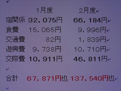 先月、1月度の、チェンマイロングステイ費用を、67,871円と纏めました。2月度も同様に、纏めたところ、137,540円と、倍増しています。項目別に、見ますと、下記の通りです。 1月度 2月度宿関係 32,075円 66,184円食費 15,065円 9,996円交通費 82円 1,839円遊興費 9,738円 10,710円交際費 10,911円 46,811円合計 67,871円也 137,540円也増えているのは、宿関係と、交際費関係です。まず、宿関係が何故、増えたかと申しますと、 一つは、ロングステイビザの延長費用です。これが、 7,700バーツ = 26,180円 一つは、バンブーハウスの宿泊代 1,500バーツ = 5,100円これで、3万1千円増えていますから、その他は、ほぼ1月と同様です。次に交際費です。2月度は、遠方から、ゲストの方が、4組、来られました。それで、3.7万円、1月度と比し、増えた結果になった次第です。ロングステイビザは、1年に1回だけですから、均等割りしたとしても1ヶ月当たり、1,000バーツ= 3,500円程度考えておけば良いですね。交際費は、2月度は多かったです。しかし、ゲストの方には、出来るだけ来て頂きたいし、来られたら歓待したいです。ですから、2月度の半分、2万円程度見込んでおけば、良いかと思います。そうすると、予算としては、1月度の、6万7千円に、ビザの3.5千円と交際費の、2万円をプラスします。ロングステイ 1ヶ月の予算 = 9万円まぁ、何れにしても、10万円以下で、生活可能と言う数字が出ました。結構、優雅な生活をして、この程度の金額です。ですから、「おいでよ チェンマイ」、なのですねー!どなたか、「いくわよ チェンマイ」、って方は、いらっしゃいませんか?注1)アルコール類を、飲まれる方は、上記にさらにプラス願います。アジアの星一番は、ほとんど飲みません。注2) 豪華な外食を頻度多く行かれる方は、上記にプラス願います。 アジアの星一番は、200~300バーツ程度の会食を10回位です。注3) 飲みに行ったり、遊びに、行く方も、上記にプラス願います。 アジアの星一番は、会食以外、飲みに行っていません。注4) 女性関係に使われる費用は上記には、一切含まれていません。 アジアの星一番は、清純な生活をしています故。 従いまして、それらに使う人は、プラスして考慮願います。注5) 宿の費用は、8,500バーツ=29,000円です。もっと高級な、例えば、 12,000バーツの部屋に住みたいならば、プラス願います。予算に関しての注意点は、こんな所でしょうか?