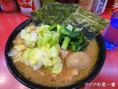 チェンマイでラーメン談義があり、その後、59(号泣)ラーメンを食べましたが、その時、話題に出た、横浜の家系総本山「吉村屋」、へ食べに行って来ました。JR横浜駅の「みなみ西口」を出たら、線路に沿って左側へどんどん歩き、大きな道路があったら、渡らずに左へ曲がれば着きます。6~7分程度?駅を出て、左側へ行かず、真っ直ぐ行ってしまったので、ずいぶん迷いました。でも、有名店なので、聞き聞き、お店に辿り着いたのです。まずは、ラーメンをお見せしましょう。これです。豚骨・鶏ガラベースの醤油ラーメンですが、ほうれん草、チャーシュー、海苔のトッピングです。それに、キャベツ、味玉を追加で頼みました。まず、スープを飲んでみたら、「うま~い!」、と言う言葉が出ました。味は濃い目ですが、鶏ガラでしょうな、ダシが聞いていて、素晴らしく美味いです。店の横には、「お客さまは、我が味の師なり」、と書かれた幕があります。地が赤で、歩いていると、目立ちます。休日は、50分待ちとか、物凄く混むらしいですが、木曜日のこの日も30人位、並んでおりました。店員さんが、うまくお客さんをさばいて、20分程度の待ち時間で店内に入れました。店内です。この人が、オーナーさんらしいです。アジアの星一番の後ろの人が、横浜のおばちゃんで、話しかけたら、しゃべるしゃべる、色々と教えてくれました。オーナーさんとか、奥さんは、あの人とか、吉村屋の歴史とか、云々。大変、為になりました。一回で、十数椀のラーメンを作ります。そして、それぞれ、麺は固めとか、味は濃い目とか、さらにトッピングも異なります。それを、間違いなくがんがん作ります。凄いなー!と思いながら見ていました。目の前の壁には、このような物が書かれています。注文する時に、好みを伝えれば、調整してくれる項目ですね。麺の硬さは、かた、ふつうめ、やらかめ、少なめ味は、うす口、濃い口脂は、多め、少なめ麺は、アジアの星一番が済む大田区の会社の、「酒井製麺」の麺を使っているそうです。味玉も、味が沁みていて、美味しいです。家系総本山、ってありますが、家系って何? と思いますよね。それは、屋号に「〜家」とついているお店を、家系と呼んでいるようです。ここは、「吉村屋」ですから、やっぱり家系ですね。全国に沢山の家系がありますが、吉村屋の暖簾分けがかなりあるそうです。それで、ここ横浜は、総本山と言っているのです。お判りですか?因みに、お値段ですが、•ラーメン 660円(中盛760円、大盛り890円)味玉60円、キャベツ90円アジアの星一番は、中盛でしたので、合計910円でした。カウンターには、コショウ、ゴマ、ニンニク、きざみ生姜、ラーメン酢などがあります。ニンニクは好きなので、始めオリジナルの味を楽しんだ後、どっぷり入れて食べました。そして、残り少なくなった時、ラーメン酢もどっぷり入れて食べました。それぞれ、味が、変わって、食べるのも楽しいです。店内をもう一度。大人気ですから、ゆっくり食べると言うのは、難しいと思いますが、味は素晴らしいです。電車代をかけて、わざわざ、食べに行く甲斐はありました。