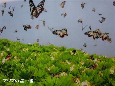 2016年5月15日(日) 日本一周143日目姫島へ蝶々を見に行って来ました。1000キロ、2000キロでも、飛んで移動すると言う、アサギマダラと言う蝶々です。昨夜、道の駅には、可愛い孫を3人連れたご夫妻の車だけ、一緒に泊まりましたが、「日本一周中ですか?」、と声を掛けてくれました。北九州から、蝶々を見に来たと言うのです。しかも、姫島まで行くと言いますが、フェリー乗り場が、道の駅から数分のところにあり、フェリーで20分で行けると言うのです。本日の予定は、移動だけで、面白くないなー、と思っていたアジアの星一番は、一緒に連れて行って貰う事にしたのです。素晴らしい、蝶々さん達です。残念ながら、この写真はポスターにあったものです。実際の写真は、今からアップします。姫島は、小さな島です。町にもならず、村ですね。歩いて廻っても、一周、数時間で廻れるのではないでしょうか。フェリーに乗って行きます。往復1140円也。説明をしてくれた通り、20分で着きました。居眠りの暇もありませぬ。島中に、このノボリがあります。歩いていくと、親切にどちらに行けばいいか、案内の看板もあります。春と秋、2度飛来するようです。春は、スナビキソウ、秋は、フジバカマの蜜を吸いに来るとの事です。飛来場所で、蝶々の休息場所にやって来ました。飛んでいるのですよ。でも、写真に収めるのは、難しいです。止まっていれば、簡単に撮影可能です。広島や、東京から来た方々が、蝶々を捕まえて、文字を書いています。月日、自分のイニシャルと番号(何頭目かシリアル番号)。姫島の略でひめ、と書かれています。これで、例えば、能登半島とか、北海道で、捕まえて、その月日や番号を見て、飛来ルートや、日程など調査しているそうです。蝶々は、一匹でなく、一頭と数えるのですね。知らなかったです。お恥ずかしい。これも、お恥ずかしい写真です。交尾中です。向き合って行うのは、人間とサルの一種だけと聞いていましたが、蝶々も向き合ってするのですねー! 驚きました。愛しているよー! とか、言っているのでしょうか。多い時は、1000頭位が、飛び回って、このような写真が撮れると聞きました。このような写真は、相当、条件が良くないと撮れませんね。オスは、羽根の下が、黒くなっています。素人でも分かりますね。そして、何故だか、ここに集まるのは、ほとんどが。オスだと言う事です。蜜を吸う、スナビキソウには、メスを誘うフェロモンが含まれているそうで、オスが好んで吸うそうです。メスは、どこにいるのか? まだ解明されていないそうです。人間のメスを誘うフェロモン食料はないものでしょうか?青の洞門にやって来ました。これは、彼の有名なお話で、禅海和尚が、30年余りをかけて、人馬交通の難渋を救う為に、トンネルを掘ったものであります。何故、青の洞門と言うのか、分かりません。これが、洞門です。禅海和尚が、掘ったのは、これが全部ではないと思われます。その頃は、もっと、狭かったのではないでしょうか?説明書きには、2度改修されたと書いてあり、元の姿は、明かり取りの窓の所が一部残っていると記載されていましたね。ここは、耶馬溪です。群馬県には、上毛カルタと言う、地域独自のカルタがあります。要は、群馬県を紹介したもので、例えば、「あ」ならば、「浅間の悪戯鬼の押し出し」、で、「い」ならば「伊香保温泉日本の名湯」、とか、言うものです。「や」は、「耶馬溪凌ぐ吾妻峡」、と言い、ここに、他県の耶馬渓が出て来るのです。それだけ、耶馬渓が、素晴らしいって、事でしょうね。全部、行けなかったので、パンフからの写真も紹介します。「競秀峰」、です。「一目八景」(深耶馬溪)、です。「猿飛千壺峡」、です。ここは、自分で行きました。青の洞窟の上の岩です。走行距離 111Km使用金額 6,409円(内ガソリン3,080円)美術館 なし観光 姫島 アサギマダラ 青の洞窟 耶馬溪郷土料理 なし