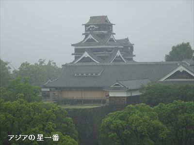 2016年5月25日(水) 日本一周153日目この日は、阿蘇山周辺で、雄大な景色を見ながら、ゆったりするつもりでいました。しかしながら、地震の影響で、山頂への道路は通行止めです。外周道路も、美術館も開いてなく、おまけに雨模様。それで、阿蘇を後にして熊本市へ移動しました。1日工程が早くなりますが、後日調整です。熊本城です。市内のど真ん中にあります。小雨なので、映りが悪いです。熊本市役所へ行き、熊本城を見られるか、と問うたところ、雨だし、市役所の14階から見たら? と言われ、ご厚意に甘えました。遠くから見ると、壊れていそうには見えません。ですが、アップで撮ると、建物が落っこちそうです。ここなんて、完全に下が崩れ落ちて、いつ上の建物が、落ちてしまうか分かりません。これまで、大地震の被害状況は、あまり感じずに移動して来ましたが、やはり、大きな地震であったのですね。町を通ったら懐かしい、「味千拉麺」の看板を見付けました。中国には物凄い数の、「味千拉麺」のお店があるのですね。結構、お世話になりました。九州が本拠地と聞いていましたが、熊本市にありました。中国のお店と味が違うのか、食べ比べて見たかったですが、まだ、午前中の早い時間だったので、諦めました。看板もキャラも、中国は全く同じのを使用しています。そして、熊本市現代美術館にやって来ました。駐車場もないので、市役所の駐車場に止めて来ましたが、1時間400円のところ、市役所に用事があると言えば、100円です。アジアの星一番も100円にして貰いました。エッシャー画伯の作品が展示されているようです。ヨッシャー、と言った人は、おじさんです。だまし絵が、得意だそうです。この絵のどこが「ダマし」か、分かりますか?白を見て下さい。鳥が飛んでいますね。では、青を見て下さい。やはり、鳥が飛んでいるのです。このような絵が、沢山ありましたが、パンフもなく、絵葉書を1枚162円で購入した、上記の作品しか写真はアップ出来ません。この作品は、どこに「ダマし」が入っているのか分かりません。入ってないのかも知れませんねー。「ダマし」見つけて下さい。地震の影響で、エッシャー展も、作品数を減らして開館しています。熊本県立美術館は、地震後閉館中で。28日からオープンするそうです。で、見られませんでした。次は、水前寺公園です。美しい庭園ですね。栗林公園を思い出します。つい先日のように思えますが、どうでしょう? もう2週間以上前になります。地震の後、水が引いて、困ったと言うニュースを聞きましたが、鯉も生き延びて、元気に泳いでいます。係りの人達が助けたのでしょう。霧雨模様の雨の中、水に濡れた緑の庭園を、独り歩きます。ロマンチックな詩でも浮かんで来そうなムードはありますが、実際には、何も浮かんで来ませんでした。アジアの星一番は、詩人じゃーないなー。展示場には、江戸時代に書かれたと言う絵もありました。水前寺公園に、阿蘇山も描かれています。そして、軽バンを走らせ、交通止めの道路を迂回し、通潤橋へやって来ました。なんや? ただの、石の橋じゃーないかい? と思いましたわな。ところが、これが、ただの橋ではないのです。水を渡す橋なのです。この図をご覧ください。取り入れ口が、7.6m吹き出し口が、6.5mこの1.1mの差を利用して、上流から下流へ水を流すのです。それを、この石の橋を使って行ったのです。考えましたなー。水源を反対側の村へ送ったのです。このような石のトンネルが、橋の上を何本か通っていて、その中を水が流れているのです。上から見ると、このようになっています。石のトンネルは、3本ですね。何故、水を放水しているかと言うと、石のトンネルの中に、砂や何かが溜まるので、定期的に、水を放出し、内部を綺麗にしているそうです。と言う事で、阿蘇山付近は、見ずに先に進みました。阿蘇は、温泉も無料、水前寺公園も無料、現代美術館も無料、と地震後、無料で開放しています。ですが、それも今月一杯のようです。お蔭様で、貧乏旅人は、今日の予算が余りました。大変、ありがとうございます。走行距離 116Km使用金額 1、361円美術館 熊本市現代美術館観光 熊本城 自然児公園 通潤橋郷土料理 なし