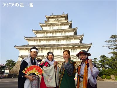 2016年5月23日(月) 日本一周151日目本日も、昨日に引き続き、美術館はありません。有明湾をずっと廻るだけで、見所も少ないです。それで、まず、島原城へ行きました。そしたら、1600年代の衣装を来た美しき女性たちが出迎えてくれました。記念撮影してくれました。どの娘さんが良いですか?島原は、島原の乱、で有名ですよね。天草四朗です。でも、この城を築いたのは、天草四朗と関係はありません。美女連なしの、島原城です。どちらが良いでしょう?天守閣へ登る途中です。石垣はそんなに高くはないですが、精巧に作られています。そして、武家屋敷へやって来ました。徒士が住んでいたと言う、場所です。それぞれの土地が90坪で、家は、25坪あり、それが、700軒あったと言う事です。こんな風に住んでいたのですね。部屋は、4部屋位あります。4LDKと言った所でしょうか、立派な家であります。南部の曲り屋のようですね。しかし、馬は飼っておりません。この両側に、ずっと武家屋敷があったのです。道の駅:鹿島に来ました。ここへ来れば、有明湾の干潟展望台があると資料に載っていたからです。これです。干潟はありません。満潮ですから、そりゃーそうです。水族館のトラフグを見て、すごすごと引き上げましたです。干潮まで、時間があるので、どこかで待たねばなりません。近くに、日本三大稲荷神社と言う、祐徳稲荷神社がありました。早速行って見ます。仲々、立派な門構えです。さすが、三大稲荷神社。因みに、三大稲荷神社は、下記のようです。1.伏見稲荷大社 京都市伏見区2.豊川稲荷 愛知県豊川市3.祐徳稲荷 佐賀県鹿島市しかし、下記の神社も候補として上げられるとの事です。笠間稲荷 茨城県笠間市最上稲荷 岡山県岡山市竹駒神社 宮城県岩沼市千代保稲荷 岐阜県海津市瓢箪山稲荷 大阪府東大阪市草戸稲荷 広島県福山市岩山に作られております。清水寺のような、柱ですね。色が赤いので趣は違いますが。奥の院へ登る参道です。稲荷神社ですから、赤い鳥居が並んでいます。結構登りました。ここが奥の院です。爽やかな風が吹き抜け、気持良いです。有明湾も見えます。ゆっくり昼食を食べても、干潮まで時間が有り過ぎます。道の駅;鹿島では、今夜の宿泊場所まで遠いので、調べて見ますと。もっと湾を廻った所に、干潟が見られる場所がある事が判明。途中、コインランドリーで、1時間以上過ごしてから、東よか干潟にやって来ました。東よか、とは、東が良いのかい?と思いましたが、東与賀と言う地名でした。時間的には、干潮まで、1時間弱早いです。しかし、見渡す限り、干潟です。地元の方の話しでは、もっと早く来れば、すぐ目の前で、ムツゴロウが見られた、と言います。潮が引くのと同時に、ムツゴロウも沖に出て行くそうです。望遠鏡が、無料で見られますので、ムツゴロウが飛び跳ねているのが良く見られました。今は恋の季節らしく、いつもより多く飛び跳ねていると地元の方に聞きました。ムツゴロウの踊り、感動ですよ!ムツゴロウを獲る、潟スキーに乗っています。実際は、釣り竿を使ってないので、多分、貝か何かを獲っているのでしょう。秋になると、シチメンソウと言う草が、赤くなって綺麗だそうです。看板で、その美しさをお見せします。シチメンソウは、絶滅が危惧されている塩生植物だそうです。秋の赤い葉の時に見たいものであります。 ↑ この赤いのがチンメンソウ走行距離 132Km使用金額 2,612円美術館 なし観光 島原城 島原武家屋敷 祐徳稲荷神社 有明湾干潟(東よか干潟)郷土料理 なし