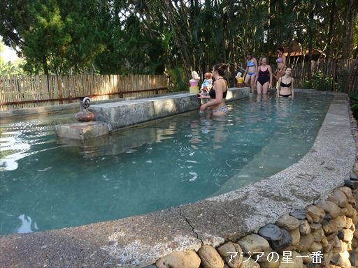 混浴しましたぞ。それも多くの白人女性とです。露天風呂です。選り取り見取り、すらりとして、おっぱいもお尻も大きい女性が多いですな。水着を付けていますが、乳首を隠すのと、お尻の割れ目を隠す程度の布切れですから、目の保養にはなります。しかし、じっと見ているのも問題あり、視線をどこに向けたらいいか、悩む問題であります。場所は、パーイ市内から、車で、15分程度でしょうか?Pai Hotspring Spa Resort,、と言うリゾートホテルの中にあります。入場料は、100バーツ=350円位ですから、安くはありませんね。日本では、整った設備でも、500円で入れる温泉もありますから。多くの白人女性が入っている時は、アジアの星一番も温泉に浸かっていたので、写真を撮れませんでした。圧巻でしたがなー。皆さんにお見せ出来ないのが、残念です。30分程、温泉に浸かり、シャワーを浴びて、着替えてから、この写真を撮りました。皆さん、5分も浸からないで、出て行きます。湯温もそれほど高くないので、長湯しても問題ないですけどねー?温泉の入り方を知らないのでしょう、きっと。リゾートホテル内ですが、ゆったりした敷地内に、バンガローが建っています。これは、温泉ではありません。プールです。プールサイドにも、多くの女性が、寝転んでいました。象に乗って、お散歩中の家族もいます。アジアの星一番のいるパーイの宿も、リゾートホテル風ですが、そこより、かなり高級です。温泉あり、プールあり、受付もきちんとした対応です。まさにリゾートホテルであります。温泉には、日本のように、すっぽんぽんでは入れません。従いまして、温泉用に、パンツを買いましたぞ。このためだけに買ったので、安物です。たった、79バーツ=270円位です。チェンマイにいる時は、わざわざ、温泉に入りたくはないな、と思っていたのですが、ここで温泉に入って見て、温泉の良さを思い出しました。入っている時も、気持ち良いですが、出た後のほかほかした気持ちよさもありますしね。温泉に来て良かった、と申し上げておきましょう。尚、この温泉には、歩いては来れません。バイクを150バーツ=500円位で借りて、来るしかないと思います。運転免許証がなくても、バイクは貸してくれます。デポジットを取られるとか、パスポートを預けるとかの要求はされるでしょうが。薬麗泉入浴剤※合わせ買い対象商品-20個でネコポス便送料無料