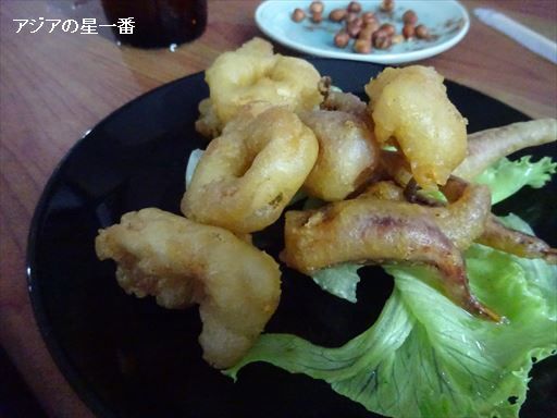 タイ語を、又、習う事にしました。今年初旬、YMCAに習いに行きましたが、残念ながら、全て忘れております。脳がおかしいのかなー?会員になっている、CLLで、新たに、初級のタイ語同好会の教室が始まっていたのです。既に、16回ほど、開催されていたようで、アジアの星一番は、途中参加となりますが、お願いして、参加許可を貰いました。英会話同様、勉強の後は、会食があります。この会食にも、参加させて頂きました。この夜は、牡丹です。餃子です。ビールは、いつもの通り、そして、どこでも、チャーンビールです。旅の途中では、禁酒していましたが、ビール1本は、軽く飲めるようになりました。ビール飲めるって言う事は、体調良好、誠に有難い事であります。豚肉野菜炒めです。アジアの星一番が作る物より、美味しいですな。さすが、料理屋であります。牛です。これも、美味しかったです。この夜の話題は、チェンマイロングステイには、役立つ話が、大変多かったです。アジアの星一番の知っている内容の項目もありましたが、興味深い話題ばかりでした。カード付帯保険の話しや、タイ人と結婚した時の手続きの話し、日本不在時の節税対策、その他もありましたなー。小説の挿入話に取り入れたい内容のものもありました。ここで、書くとネタバレなので、書きませんが、山川純一のチェンマイ生活の有用な話題でありました。太巻きです。皆さん、安い所に住んでおられるのですよ。2LDKで、6,000バーツとか、ワンルーム、キッチン付きで、3,000バーツとか。安いですよねー! アジアの星一番は、ワンルームで、部屋としてはキッチンなし(ベランダで料理はしていますが)、7,000バーツです。良いですよねー。 引っ越しするかなー?何か頼めと言われましたので、お好み焼きをお願いしました。イカ焼きです。これは、結構高いですよ。タイ語同好会、来週から文字を教えてくれるそうです。昨年、文字の本や、ノートを、CLLのお仲間の方に頂きました。少し勉強しましたが、ほとんど、積んであります。それが、これから、役に立ちそうです。因みに今夜の会食費用は、お一人様、260バーツ=900円弱でした。