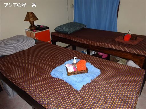マッサージは、週に3回、時には、4回通っております。行き付けは、PIMマッサージと言うお店で、PIMさんが、オーナー兼、マッサージ師なのです。奥に部屋があるのは知っていました。時々、息子さんが出て来る部屋なのですねー。そして、先日、行ったら、いつものマッサージの所は、満席で、その部屋に通されました。床置きでなく、ベッドなのですねー。タイマッサージの場合、ベッドは少ないですね。床に布団を敷くのが、一般的です。そして、このベッド、中国式なのです。マッサージに関して、全身は、タイが世界一、足マッサージは、中国が世界一、とアジアの星一番は思っております。しかし、全身マッサージで、中国の優れていることがあるのです。それは、何か?顔の所に穴が開いていて、そこに顔を埋めます。すると、そこで首を曲げる必要もなく、普通に息が出来るのですよ。これは、優れもの、と思っていました。それが、タイは、床置きですから、顔を入れる穴がありません。それが、PIMマッサージの新ベッド、顔の所に穴が開いているのです。枕の下に穴があります。これは、うつ伏せになった時、楽ですねー!ここが、いつものマッサージルームであります。見える所に3人、写真を撮っている側に1人、合計、4人が一緒に施術出来ます。今度は、新ベッドが2台入ったので、合計6名です。儲かっているのかなー?ここは、別の行き付けの、Aeyマッサージです。ベッドですが、顔の所に穴は開いていません。全身マッサージが、1時間:150バーツですから、アジアの星一番の知る限る一番安いです。Aeyマッサージを終えて、チャリを飛ばして、YMCA辺りを走っていたら、こんな看板を見つけました。「アニメかわいい」、アニメでも売っているのかなー? とお店を覘こうとしましたが、それらしい雰囲気はありません。そして、たまたま、ちゃ~お、を見ていたら、アニメ・カワイイ・ショップは、アニメ屋さんでなく、マッサージ屋さんである事が分かりました。ちゃ~おで、宣伝しているのですねー!全身マッサージが、1時間:400バーツですから、驚くべき高さです。貧乏旅人は、行く気がしませんなー。いったい、どんな、マッサージをしてくれるのでしょう?マッサージって、マッサージ師さんと、相性があるのか、ほとんど同じようなマッサージであっても、気持ち良いのと、そんなに気持ち良いって感じない時があります。それで、アジアの星一番は、いつも、PIMさんを指名してマッサージして貰っていました。そして、先々週だったかなー?PIMさん、忙しいので、別の人、ラックさんになりました。この人の、マッサージが、アジアの星一番に合ったのですねー!とっても、気持ち良いのです。アジアの星一番は、太腿の外側が痛くなります。そこを揉んで貰うと気持ち良いのです。マッサージ師さんに、そこを揉んでくれって言っても、やり方が、決まっているようで、あまり太腿の外側を揉んでくれません。しかしながら、ラックさん、何も言わなくても、揉んでくれるのです。気持ち良いのです。35歳独身です。離婚もしていません。ですから、子供もいません。年間、100万バーツを支払えば、旦那になって貰うと言います。え? 年間、100万バーツ? それって、3百数十万円?そんなにありませんなー! だって、120万円あったら、チェンマイで、1年間生活出来ますよ。アジアの星一番の3年近い、チェンマイでの、生活費を1年?ラックさん、あなたは、そんなに価値ある女性ですか?しかし、その後は、PIMさんに話して、ラックさんを指名しています。彼女は、フリーで、呼ばれれば、ホテルでも行くようです。聞いたら、アジアの星一番の宿にも来ると言っていました。でも、宿には呼びません。別のマッサージになったら、困りますからね。彼女のマッサージは、ほんと、気持ち良いです。健康マッサージが一番です。