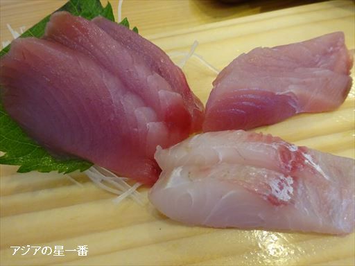 急に刺身定食が食べたくなりました。日曜日のお昼時です。アジアの星一番の昼食は、大体はぶっかけ飯なのですが、気が向くとカオマンガイを食べたり、タレーパッポンカレーを食べに行ったり、極、稀にはバミーナームを食べています。でも、この日のように、刺身食いてぇー、などと思う時があるのですねー。通常の3倍のお値段はしますが、出かけました。三鳥です。刺身定食100バーツ:340円位と、寿司定食130バーツ:440円位があります。迷わず、刺身定食にしました。刺身定食の方が安いと言う事もあるのですが、ご飯のお代わりが無料で出来るのです。それで、刺身定食にしているのですね。こう言う時は、大食いになりますので。これで、三鳥(SUN TORI)と、読みます。煮物に、漬物に、味噌汁に、デザートのスイカも付いています。日曜日の昼食は、刺身と寿司の、二つの定食しかやってないようです。お店の人、お客さんが入って来ると。「刺身? 寿司?」と聞いていましたから。夜は、各種のメニューがありますぞ。ちと、貧乏旅人には、敷居の高い、お値段でありますので、仲々、行けませんな、夜は。仲々と言うか、一度も行っておりませぬ。テーブルに置いてあった、お魚さんです。こんな狭い所でも、元気に泳ぎ回っています。幸せなのでしょうか?
