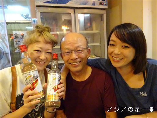 タイ語クラスは、前回に引き続き、文字です。中子音と母音の組み合わせの読み方を勉強しました。高子音と母音の組み合わせも、始まります。で、K先生なのですが、中子音を、「ちゅうしおん」、と発音するのです。「ちゅうしいん」、と読むのではないでしょうか?何故ならば、パソコンで、「しおん」と入力しても、子音は出て来ません。「しいん」と入力すると、子音は、出て来ます。因みに、デジタル大辞泉を調べましたら。しおん → 子音:注釈に、「しいん」、とのみあり。しいん → 子音:で、詳しい説明あり。従いまして、どちらでも良いようですが、「しいん」と読む方が一般的なようであります。母音は、ボイン、と読めば良いので、あのボイ~ンと似ていますから、「ぼおん」よりも、「ぼいん、」と読む方が親しい感じでありますな。なんか、訳分からん、いやらしい、説明じゃのー。中子音 → 9文字高子音 → 10文字低子音 → 23文字 これらを覚えねばなりません。さらに、母音が、36文字ほどあります。これを、全部、覚えるのは、アジアの星一番には、1年以上かかりますぞ。なんせ、覚えてもすぐ忘れますからな。さて、勉強した後は、我が友、テラの行きつけの店、日の出食堂へ皆さんで繰り出しました。昨日のブログに引き続き、日の出です。日の出食堂の出番が多いですなー。まずは、餃子です。CLL副代表に就任された、Tさんが、つまみを持って来てくれました。紳士然とした、ハンサムな方ですぞ。いつものアジアの星一番のつまみ、枝豆です。冷や奴も、一人一皿、ありましたが、写真撮るのを忘れました。いつも食べていますからね。砂肝です。こりこりして美味しいですね。日の出食堂の定番です。タイ語の生徒、9名が集まっての会食ですから、タイ語の勉強の話題で、始まりました。その後は、出身地の話題で盛り上がりましたなー。東京出身が多くって、神楽坂だの、吉祥寺だの、そんな地名が出ていましたな。長州出身の女性もいましたぞ。お好み焼です。日の出食堂には、「お好み焼」の暖簾が出ています。ですから、これは、日の出食堂の、お薦めなのです。そして、アジアの星一番の好きな、おにぎりです。中身は、梅と、おかかだったと思いますが、両隣に座った女性、お二人共、梅が嫌いだと言うのですねー!どうしてでしょう? 美味しいと思いますけどねー?人の好みは違います。 分からんもんですなー。今夜の会計は、チャーンビール、65バーツ、料理、140バーツ、合計205バーツ=700円でした。あ、そうそう、この日の話題です。先日、アジアの星一番が、チェンマイでの1ヶ月の生活費を公表しましたが、それについて激論でしたぞ。皆さん、1ヶ月、76,400円では、生活出来ないって言うのですねー!驚きます。何にそんなに使っているのでしょう?1月の生活費なので、アジアの星一番の費用には、使った費用しか含まれていません。従いまして、例えば、下記などは含まれていません。1.ビザ延長費用2.CLL年会費3.洋服などの購入費4.調味料や、嗜好品費用しかし、上記を合計して、12ヶ月で割って、1ヶ月の費用にプラスしても、2,000円程度になるかどうかだと思います。従いまして、8万円までは、いかないでしょう。皆さん、どうして、そんな高い生活費になるのか、貧乏人、節約家のアジアの星一番には、さっぱり分かりません。宿を、5,000バーツの部屋に代えて、ゴルフを止めて、マッサージに行かなかったら、1ヶ月:3.5万円で、生活出来るとも記載しました。絶対に無理! と皆さん言います。しかし、アジアの星一番の、家計簿からすれば、可能なのです。日本に住む皆さん、アジアの星一番は、嘘言っていませんぞ。結構と言うか、かなり充実した生活をしても、安く生活出来ます。チェンマイに住む皆さん、お金持ちなのですかねー。アジアの星一番が考えるに、お金持ちは、どんどんお金を使って、タイ国の経済に貢献した方が良いと思うのです。わたしには、出来ませんが・・・。いやはや、他の人の生活レベル、分からんものでありますなー。