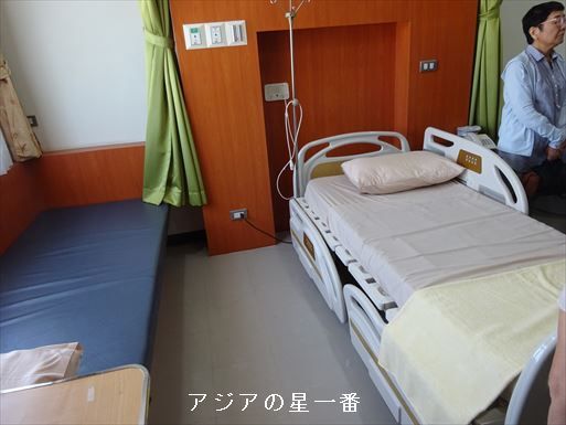 自分に関係あるのか、ないのか、分かりませんが、誘われましたので、何にでも興味のある、アジアの星一番、介護施設の見学会に参加しました。場所は、サタディマーケットの道路を、どんどん南へ進みます。エアーポートプラザを、右手に見て、さらに南へ進みます。すると、左手に、大きな、テスコ・ロータスが見えて来ます。その200mほど走った、左手にある、病院です。サンティタムの宿から、チャリで、30分かかりました。部屋です。健常者でも、入れると言う事ですが、完全に医療病室のようですね。ベッドが、病院のようです。GERIATRIC MEDICAL CENTRE、と言います。そのまま訳せば、老人医療センターと、なりましょうか?チェンマイ大学の関連の施設との事です。廊下は、ホテルには見えませんねー、やはり病院風ですなー。廊下から入って部屋を見た所です。これだけの広さがありますから、一人ならば、何ら問題ないと思われます。トイレにシャワー室です。部屋には、テレビも付いていますし、小さいですが冷蔵庫もあります。どこまで調理していいのか分かりませんが、キッチンも付いています。椅子とテーブルもあります。一番初めの写真に見えますが、付き添いの方が、完全に横になって眠れる、ソファーベッドもあります。窓から見る景色です。青空が広がって、清々しい景色ですねー!3階には、リハビリ室もありますし、医療センターですから、医者もいます。介護費は、入居費とは別に支払う必要はありますが、便利は便利ですね。紅茶にお菓子を準備してくれて、質疑応答です。費用は、3食が付いて、4.5万バーツ=15.5万円ほどです。どうなのでしょうねー? こう言う施設からすれば、安いのでしょうか?それとも高いのでしょうか?健常者でも入れるって事ですが、1ヶ月、ゴルフもマッサージもして、7.6万円で生活するアジアの星一番にとって、15.5万円は、激高ですね。このお値段、ゴルフもマッサージもなしですから。健康で自分で歩けるならば、絶対に入りません。問題は、動けなくなってからの問題でしょうか?日本の施設が、どの位の費用で、入院できるのか分かりませんが、病気治療の事を考えると、15.5万円どころか、チェンマイでは、天井知らずで、幾らまで支払わねばならないか、分かりません。日本ならば、1ヶ月当たり、何万円まででしたか? 高額医療限度額とかあって、それを超えれば、保険で支払ってくれますよね?とすれば、言葉は通じるし、廻りも日本人ばかりですから、わざわざ、チェンマイに入院する必要はないと思われますなー。どうなのでしょうか? 日本は色々と、問題があるのでしょうか?満室で、入院できないとか? 滞在期間が限られるとか?その辺りの知識がなくて、比べられません。調べて見ました。高額医療限度です。幾ら医療費がかかっても、月額、10万円以上支払う事はなさそうです。70歳未満で一般的な所得(年収約370万~約770万円)の人は、次の計算式に当てはめて自己負担限度額を算出する。 【8万100円+(かかった医療費-26万7000円)×1%】 この計算式に当てはめると、医療費が100万円だった場合の 自己負担限度額は8万7430円になるとなると、やはり、日本での、入院を考えた方が良いでしょうか?