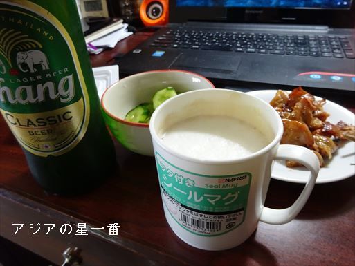 広い部屋のマンションにお呼ばれ致しました。そこで、美味しい、鍋料理をご馳走になりました。この夜は、我が友、テラと、あのDSヒロも、一緒にお呼ばれです。この夜は、クミちゃんがいなので、DSヒロ得意の、お触りは、残念ながらなしですな。それでも、ヒロは、いつでも、にこにこしておりますぞ。枝豆も準備してくれました。勿論、チャーンビールをご馳走になっています。これは、バナナですよね? 炒めたのかなー? つまみに良いですよ。サッパリ系の、キューリです。お菓子のつまみもあります。18時にお邪魔して、楽しい会話が続きますので、時間はどんどん過ぎ去って来ます。メンバーに、水道工事やガス工事に携わった方がおられて、さらに、その入札を管理する仕事をされた方もいたので、その方面の話題で盛り上がりました。今は、袖の下は、大変厳しく取り締まりされており、賄賂を渡す事は極めて難しい時代でありますが、昔から、現金が飛び交うような事はなかったとの事です。従いまして、日本は、そう言った面でも、規律正しいですね。アジアの星一番の知る限り、インドネシアも、マレーシアも、中国もそしてタイも、賄賂がまかり通っていましたからね。旅人のブログに寄れば、西アフリカ辺りの国では、今でも、ポリスが賄賂を要求するし、チェンマイでも、警察さんが、取り締まりして、賄賂をポケットに入れる所も、体験しました。日本では、官庁関係の建設工事などで、談合はあったとしても、賄賂は、なかったと言うのですから、江戸時代から、厳しい規律を守って来たのでしょうか?時代劇などで、何故か悪者の越後屋と、役人が金をやりとり、悪い事して正義の味方にやっつけられますが、そう言うのは、稀だったのではないでしょうか。夜も、更けて、22時を過ぎて、さらに時間が経っています。こんなに料理を頂いたのです。鶏肉の出汁が効いて、野菜も沢山で、栄養バランス満点であります。とても、美味しかったです。ふぅ~! 食べ過ぎじゃわい!遅くまで、ご馳走になりまして、Hご夫妻には、ご招待して頂き、感謝の言葉しかありません。もうじき、帰国のようですから、又、半年後か、来年でしょうか?お会いしましょう。それまで、お元気にお過ごし下さい。ありがとうございました。