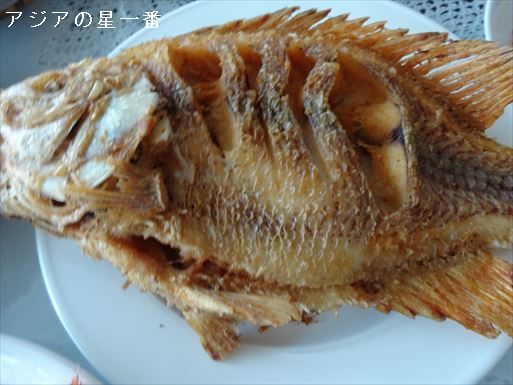 朝から、シベリア鉄道の旅の検討を、ずっと集中して行っていました。すると、11時頃、滅多にならない、部屋の電話が鳴りました。韓国人の間違い電話かなー? 怒ってやろうか? と受話器を取ると、プイと言う、オーナーの片腕の女性でした。彼女は、アジアの星一番が、この宿に来た、8~9年前から働いています。あの気難しく、ドケチのオーナーに気に入られている程ですから、かなり出来る女性なのです。彼女言いました。「マダムが昼食を食べようと、言ってる。」、と。彼女達、鬼婆の事を、マダムと呼んでいるのです。「え? ランチ? いつ? どこで? 誰と?」続けざまに質問します。すると、宿の食堂で食べると言うのです。どこかへ出かけるのは面倒だなー、と思っていたので、丁度良かったので、快く、招待を受ける事にしました。12時、又、部屋の電話がなりました。準備が出来たので、来いって電話でしょう。食堂に降りて行くと、既に、オーナーのマダム、マネージャーと呼ばれている、オーナーの弟、そして見知らぬおっさんが席に座っていました。4名で食事です。テーブルには、料理が並んでいます。でかい魚ですぞ。食べろ! 食べろ! と鬼婆言いますが、この魚、硬くて、引きちぎるのが難しいです。味は良いのですけどね。これは、豚肉です。骨付きですが、肉は堅くもなく、美味しいですね。これは、何でしょう? 色々と入っています。鬼婆は、片言の英語しかしゃべれないし、弟のマネージャーは、英語は堪能であるものの、無口で食べています。で、アジアの星一番も、黙々と食べましたな。シューマイですね。鬼婆、さかんに食べろと、料理を薦めてくれます。宿泊客は、アジアの星一番だけだし、従業員は別の部屋で食べています。ですから、アジアの星一番は、特別な客で招待されている事が分かります。こんなに料理はあるのですよ。アップの写真で撮った以外、大きな海老もあります。野菜もあります。スープもあるし、勿論、ご飯もあります。豪華な食卓ですぞ!最近、鬼婆には、フルーツ盛り合わせや、100%ミカンジュース2本とか、中華まんじゅうとか、色々と貰っています。おまけに、昼食まで、頂いて、鬼婆と呼びにくくなりましたぞ。でも、仏様と呼ぶほどでもないしなー?従業員が読んでいる、「マダム」と、呼ぶかなー?もう80歳なのですが、元気で働き者なのです。自分で、木々の枝切りや植木の手入れもします。それで、受付の従業員達にも、それらの仕事をやらせるのですねー。受付で入社したのに、なんで、掃除せにゃあかんのや! って、若い受付の連中は思うのですよねー、きっと。それで、評判が悪いんです。鬼婆自体が、何もせず。意地悪ではないのですね。逆に、とっても、優しい面もあるのです。まぁ、特殊な方ですな。