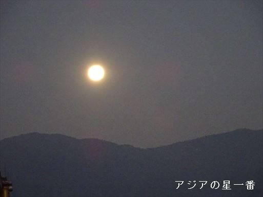 朝、起きてベランダへ出たら、大きな月が、ドイステープの山に沈んでいきます。そうそう、昨夜は、フルムーンだったのですね。安物のカメラなので、この程度しか写せません。水曜日は、タイ語クラスの日です。そして、ゴルフの日でもあるのですねー!世界の各国、特に中東が多く、エクアドルにも赴任した、Iさん、東南アジア各国を廻り、自力で家を建て、テレビにも出演した、Sさんそして、丸の内や、銀座に長年勤めた、Mさんそして、貧乏旅人・アジアの星一番、4名で廻りました。ようやく100を切る程度の腕前ですが、雑談しながら、廻るのも楽しいものであります。そして、午後は、タイ語クラスです。この日は、2重母音の勉強です。数は多くないですが、子音に母音に声調記号に、それらが、全部書かれているのを、アルファベットの読み方に書きます。まぁ、難しいですなー。タイ文字と、格闘している皆さんです。そして、勉強の後は、いつもの通り、会食です。テラが常連の、日の出食堂です。昨日より、体調が優れず、ビール1本を飲み切れなかったので、この夜は、自重して、禁酒としました。で、皆さんとは、別勘定で、肉野菜炒めを頼んだのであります。それから、おにぎりです。これで、アジアの星一番の夕食の全てであります。皆さん、アルコールで良い気分、おしゃべりに花が咲きます。アジアの星一番は、素面。 聞き役ですかなー?聞いていて面白かったのは、最近タイ人の女性と結婚した方がいて、おのろけ話をしていました。年金だけしかないから、お金は、あるしか上げられないって、言う事で、お嫁さん、了解しているとの事です。そして、「あなたの名字に名前を変更したいって、彼女が言うのよ」、と嬉しそうに説明してくれるのですよ。結婚って、そんなに良いもんですかねー?お金を欲しがる、タイ人の嫁さんが多いと噂に聞きますが、実際はそうでもないのかも知れませんぞ。アジアの星一番は、貧乏でケチだから、女性にはモテない、と多くのタイ人女性に言われます。皆さん、お金持ちが好きだと言いますな。別に、あっしは、良いけどね。 孤独が好きだから、さー。そんな話で、盛り上がっていましたなー。どこかで貰ったと言う、お酒を、どなたかが持って来ました。「ホッシー、無料だから飲め!」って言うのですよ。禁酒しているのに、意地悪な人だなー。19時に帰ろうとしたら、テラに早い! と怒られました。で、19時半になろうとする頃帰りましたです。この日の、お勘定は、たったの90バーツ=310円でした。
