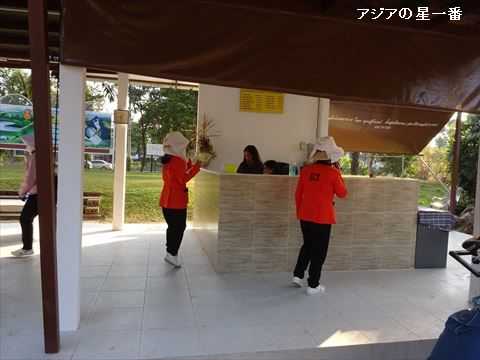 パヤオで止まった宿です。Ym家から歩いて数分の所にあります。バンガローがずらっと並んでいます。これが宿の看板です。グーグル先生に聞いて見ましたが、分かりません。ゆっくり泊まる所のような意味かも知れません。これがアジアの星一番の泊っているバンガローです。ベッドです。寒かったので、ダブルの毛布を折りたたんで2枚にして使いました。それでも寒かったですよ。チェンコーンのパパイヤビレッジ程ではなかったですが・・・。ここが作業場です。この宿WiFiが通じません。それが困りますね。ブログがアップ出来ません。皆さんにコメント頂いても返事が書けません。それでYm家のお邪魔してWiFiを借りましたが、今時、WiFiのない宿って珍しいですよね。最低限WiFiは準備して欲しいです。それに椅子が丸太なんです。お尻は痛いし、後ろの背もたれがないので寄りかかる事が出来ません。それも不満でした。早く起きてしまったし、WiFiもないのでやる事がありません。それで外はまだ暗いですが、朝の散歩に出かけました。薄明るくなって来ました。犬に吠えられるので、気が気ではありません。Ymさんに杖を借りて来たので、杖を振り上げると犬は逃げる気配を見せます。手ぶらだと舐められますね。煩い犬どもですよ。池の辺に建つ家もありました。15分程歩いたでしょうか? パヤオ湖にやって来ました。遠くの方に灯りが見えます。往復30分、朝の散歩は、たった2500歩でした。犬に吠えられなければもっと歩きたかったですが、怖いので戻りましたです。早めにYm家にお邪魔し、ブログをアップし下書きも準備しました。朝食です。沢山のおかずです。焼き魚です。これはアジと言う事です。どうして頭が曲がっているのでしょう?何か理由があるらしいですが、意味を忘れました。アジの焼き魚、美味しいですね。ご飯と味噌汁です。ご飯をもう少し食べたいなー、と思っていましたが、まだうどんがあるとの事で、お代わりは止めました。うどんです。美味しいですね。お餅も2個入っていました。温泉卵です。いやー、お腹一杯になりました。ここ2日間は食べ過ぎですな。きっと体重も増えている事でしょう。11時半バスは出発です。バス停まで息子さんに送って貰いました。このグリーンバスに乗ります。トイレは後部にあるようです。座席です。満席ではありませんが、かなり埋まっています。アジアの星一番の座席は、一番前です。嬉しいですねー!前方が丸見えです。この席が好きなんですよ。前を見ながらのバスの旅、最高ですな。曲がりくねった道になって来ました。山道ですね。登りになるとバスの出力が落ちるようで遅くなります。大丈夫かいな、と心配になりますな。どこか分かりませんが、休憩しました。そこに海苔があったので買いました。朝食のご飯のお供に良いかと買ったのであります。たったの35バーツ=140円です。さらにバスは走ります。途中、渋滞もありました。センタンフェスティバルまで帰って来ました。もう3時間は過ぎています。3時間15分程かかったでしょうか?隣に座ったのは、Hnさんです。人生経験豊富で色んな話を聞かせて貰いました。ですので、時間の経つのは早かったです。居眠りもほとんどせず3時間半近くお話ししながら乗って来ました。バス亭に着きました。ここからソンテゥに乗り換えて宿に戻ります。SjさんとMeさんは別方面なので、Hnさんと二人、運転手と交渉してお一人50バーツ=200円で帰りました。我が宿です。長年住んでいる部屋は落ち着きますね。便利になっていますし、WiFiが24時間使えるのが最高です。WiFiなしでは生きて行けませんよ。夕方はビールです。部屋でゆったり飲む一人酒も良いですな。つまみと夕食は寿司です。サンティタムの屋台で買って来ました。10貫買ったと思いましたが、9貫ですね。これで65バーツ=260円です。2泊3日のパヤオの旅、大晦日に正月元旦と、Ym家には大変お世話になりました。ご馳走も沢山頂きました。雑煮も食べさせて頂き、正月気分もばっちり味わえました。ありがとうございました。