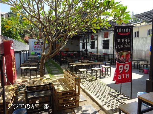お店の奥には、夕方18時からですが、99バーツで、肉、野菜の
