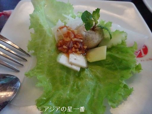 これが、ネーム・ムアンに包む、ベトナムソーセージです。