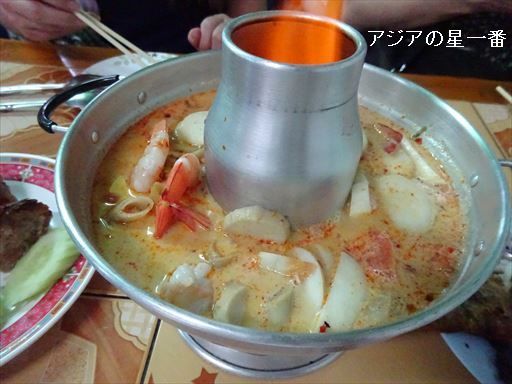 トム・ヤム・クンを食べたいと言うので、ほんの少しだけ辛くして、と