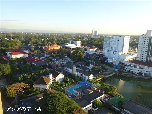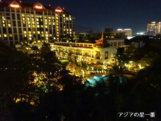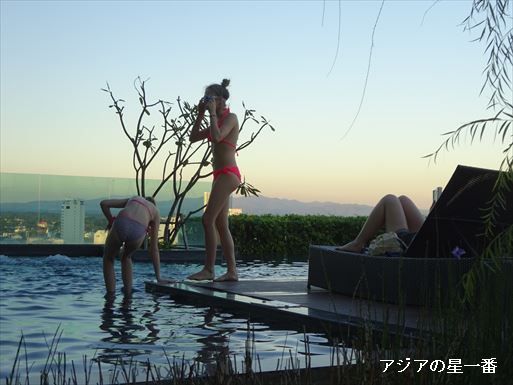 屋上から見た、シャングリラの中庭です。プールが綺麗ですねー。