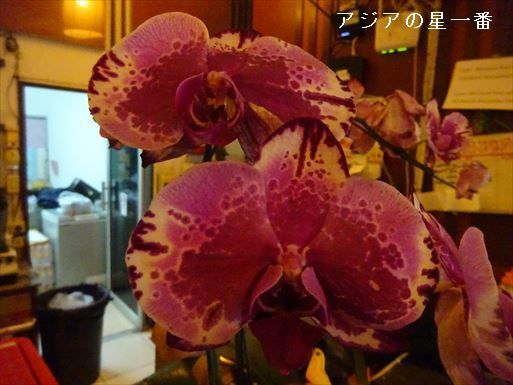 部屋の入口を見たら、なんと、先日、農園を見に行った、胡蝶蘭が