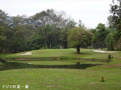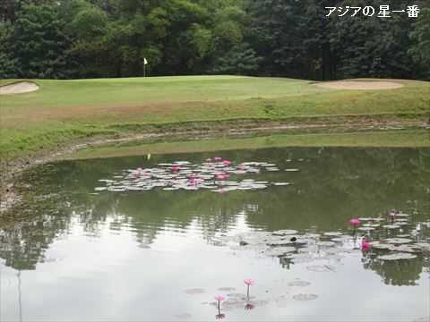 ここは14番ホールでしょうか。池越えのミドルホールです。