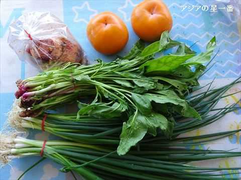 金曜マーケットで買って来たものです。ほうれん草も買えました。