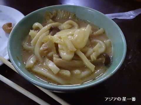 味噌味ですね。とっても良い味です。スープは買って来たようです。