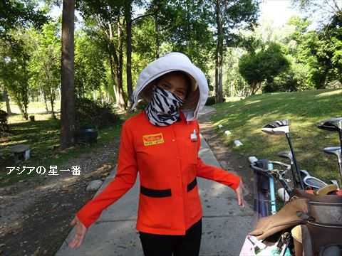 キャディのピーさんです。恥ずかしがってマスクは外しません。