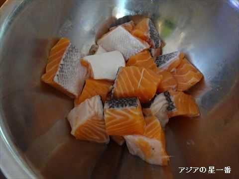 サーモンです。Miさんは、石狩鍋だぞ、と言っています。