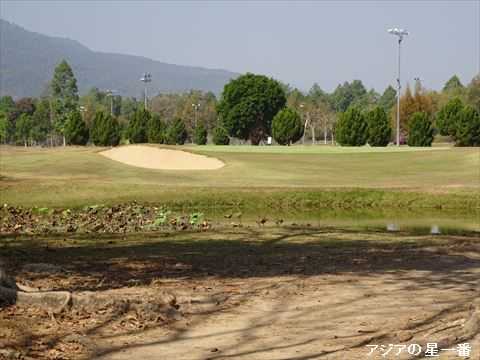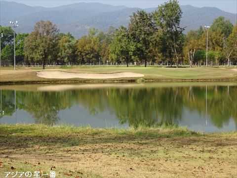 池越えショートホールです。今日は調子が出ません。バンカーに