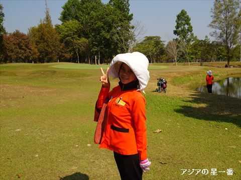 キャディさんです。今回はマスクを外しています。おっぱい大きいなー。