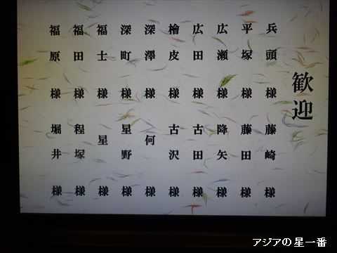 歓迎、とあり、それぞれ客の名前が書いてありました。アジアの星一番の