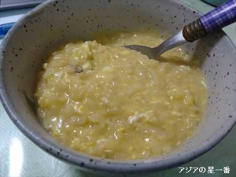 朝食は、牡蠣鍋のスープが残っていたので、おじやを作りました。