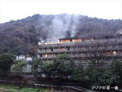 天成園は屋上に露天風呂があります。湯けむりが立ち上がっていますね。