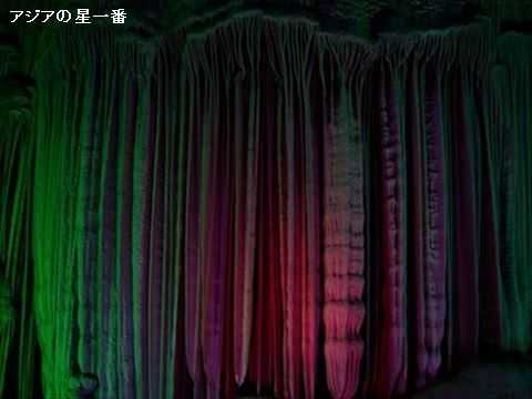 ここは鍾乳洞です。ライトアップされて美しいです。