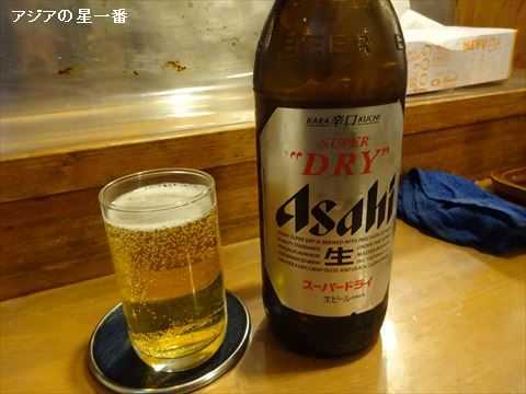 ビールはスーパードライです。大瓶で750円です。