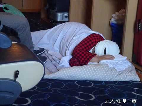 ここでも寝ています。チュニジア人は床に寝るのが苦にならないのですね。