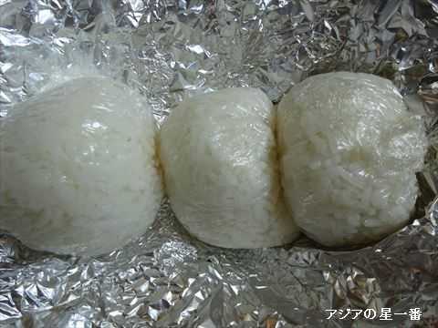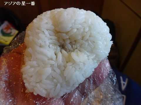 ビールも飲み終わり夕食です。おにぎりが1個残っています。