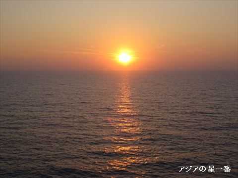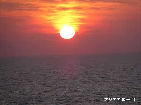 デッキに出ました。美しい夕陽です。アフリカの大地に沈んで行きます。