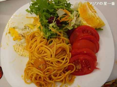 朝食も作ってくれました。昨夜の残りのスパゲッティもあります。