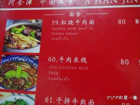 紅焼牛肉面にするかなー、とメニューを眺めます。80バーツ=320円です。