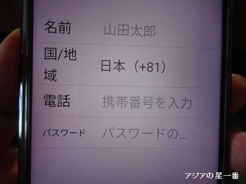 名前、電話番号、パスワードを入力します。ここまでが出来たり
