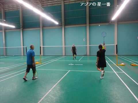 午後3時から、バドミントンです。グリーヒルホテル内の体育館で