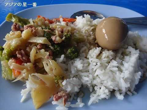 ポークの入った野菜炒めと、茹で卵にしました。これで40バーツ=160円です。