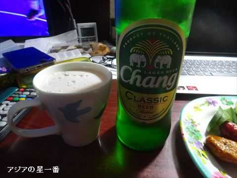 何もしない内に、もう夕方です。カオニャオとおかずの店でつまみを