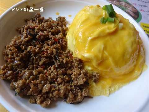 これがガパオライスです。ふわトロ卵がご飯の上に乗っています。