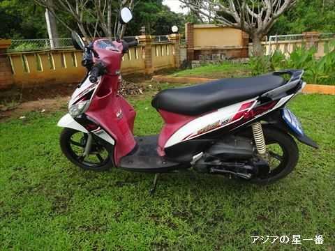 いるバイクです。1日100バーツ=400円で借りられます。