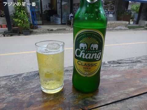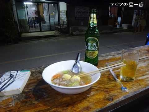 夜はいつもの食堂です。チャーンビールです。