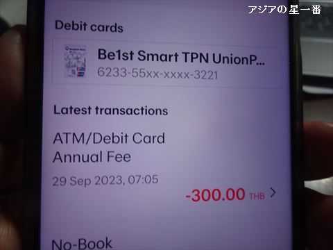 213バーツ=850円を支払いました。1ヶ月いつもこのお値段です。