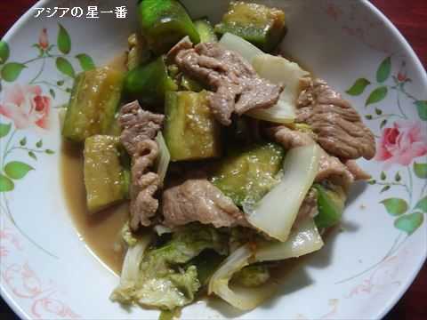 夜は自炊にしました。茄子、豚肉、白菜の味噌味炒めです。
