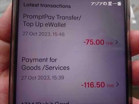 支払うと、このように金額が出て来て、確認出来ます。便利ですね。