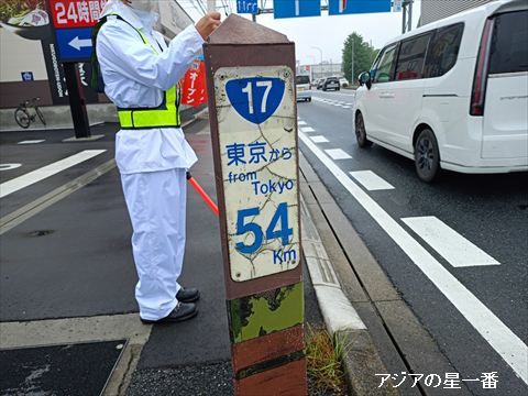 東京から54Kmと言う道標がありました。始めの10キロは、電車に